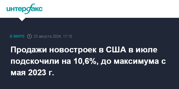 Продажи новостроек в США в июле подскочили на 10,6%, до максимума с мая 2023 г.