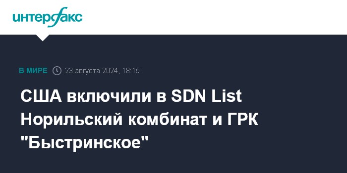 США включили в SDN List Норильский комбинат и ГРК "Быстринское"