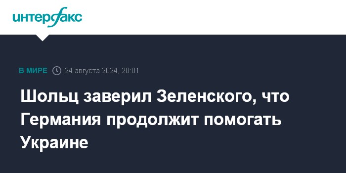 Москва. 24 августа. INTERFAX.RU - Канцлер ФРГ Олаф Шольц в ходе телефонного разговора с президентом Украины Владимиром Зеленским сообщил, что продолжит оказывать поддержку Киеву, сообщает агентство EFE.