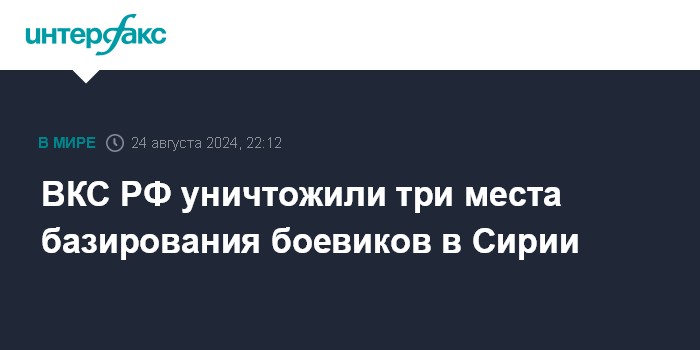 "23 августа ударами ВКС России уничтожены три места базирования боевиков, вышедших из зоны Эт-Танф и укрывавшихся в труднодоступных районах сирийской пустыни Белая", - сообщил он в субботу.