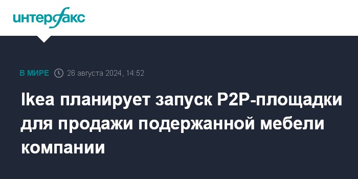 Москва. 26 августа. INTERFAX.RU - Шведская Ikea планирует запустить электронную площадку, пользователи которой смогут продавать друг другу подержанную мебель компании.