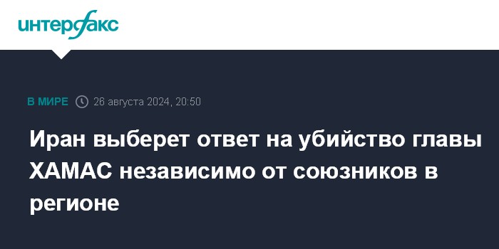 Иран выберет ответ на убийство главы ХАМАС независимо от союзников в регионе
