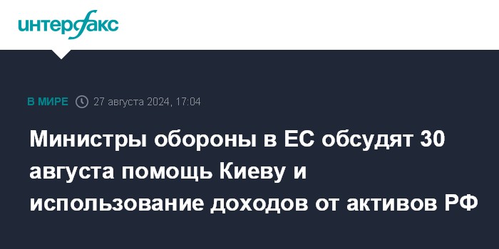 Министры обороны в ЕС обсудят 30 августа помощь Киеву и использование доходов от активов РФ