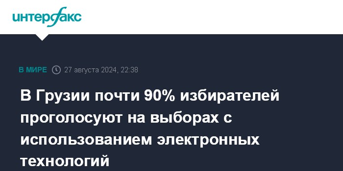 Москва. 27 августа. INTERFAX.RU - В Грузии почти 90% зарегистрированных избирателей на парламентских выборах 26 октября проголосуют с использованием электронных технологий, сообщила на брифинге во вторник вечером пресс-спикер Центральной избирательной комиссии Грузии Натия Иоселиани.