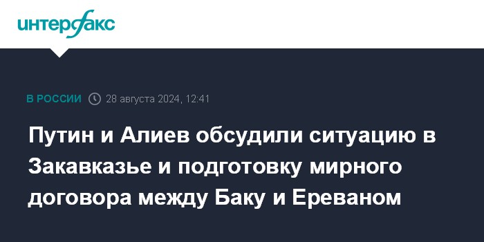 Путин и Алиев обсудили ситуацию в Закавказье и подготовку мирного договора между Баку и Ереваном