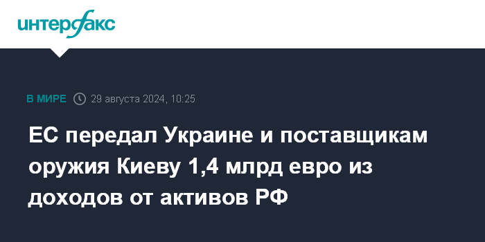 ЕС передал Украине и поставщикам оружия Киеву 1,4 млрд евро из доходов от активов РФ