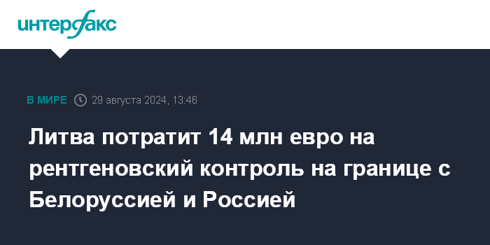 Москва. 29 августа. INTERFAX.RU - В Литве системы рентгеновского контроля будут установлены на железнодорожных станциях Кибартай (Нестеров на российской стороне) и Стасилай (Бенякони на белорусской стороне), сообщает агентство BNS со ссылкой на "Литовские железные дороги" (Lietuvos gelezinkeliai, LTG).