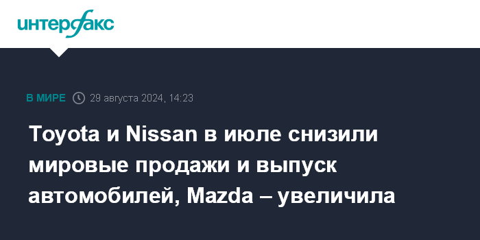Toyota и Nissan в июле снизили мировые продажи и выпуск автомобилей, Mazda – увеличила