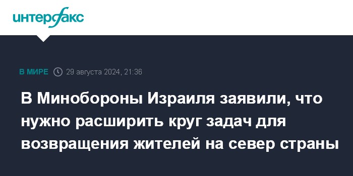 В Минобороны Израиля заявили, что нужно расширить круг задач для возвращения жителей на север страны