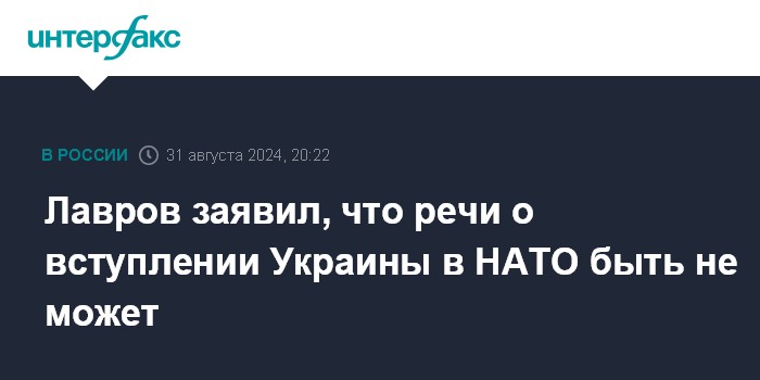 Москва. 31 августа. INTERFAX.RU - Российская сторона полностью отвергает возможность вступления Украины в НАТО, заявил глава МИД РФ Сергей Лавров.