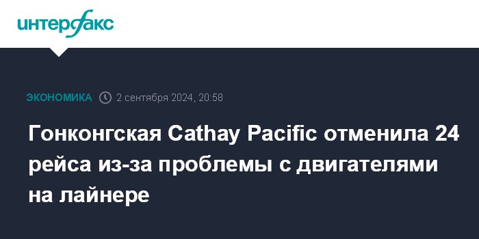 Гонконгская Cathay Pacific отменила 24 рейса из-за проблемы с двигателями на лайнере