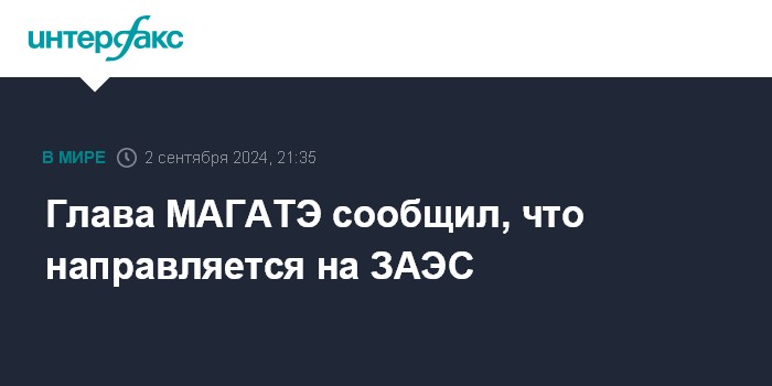 Москва. 2 сентября. INTERFAX.RU - Глава МАГАТЭ Рафаэль Гросси сообщил, что в настоящий момент находится в пути на Запорожскую АЭС.