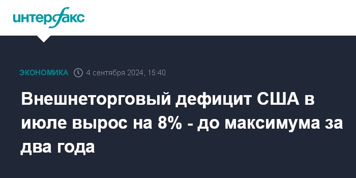 Внешнеторговый дефицит США в июле вырос на 8% - до максимума за два года