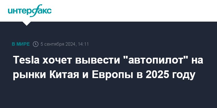 Tesla хочет вывести "автопилот" на рынки Китая и Европы в 2025 году