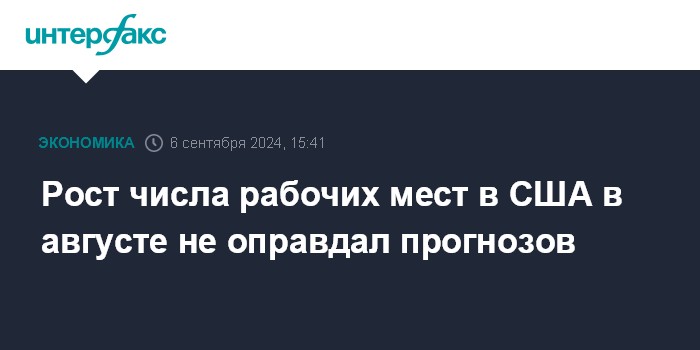 Рост числа рабочих мест в США в августе не оправдал прогнозов
