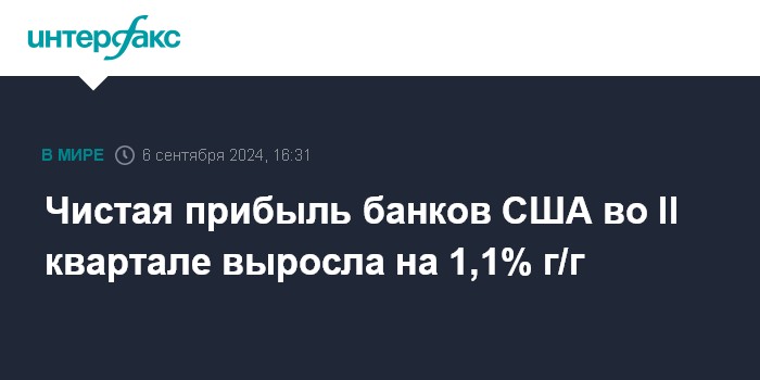 Чистая прибыль банков США во II квартале выросла на 1,1% г/г