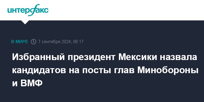 Избранный президент Мексики назвала кандидатов на посты глав Минобороны и ВМФ