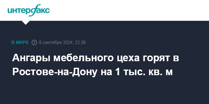 Ангары мебельного цеха горят в Ростове-на-Дону на 1 тыс. кв. м