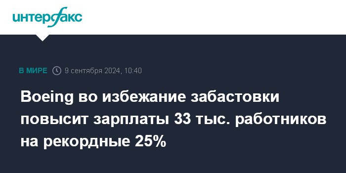 Boeing во избежание забастовки повысит зарплаты 33 тыс. работников на рекордные 25%