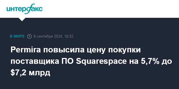 Москва. 9 сентября. INTERFAX.RU - Американская инвестиционная фирма Permira повысила цену покупки поставщика программного обеспечения для создания сайтов Squarespace Inc. на 5,7% до $46,5 за акцию с $44, говорится в совместном сообщении компаний.