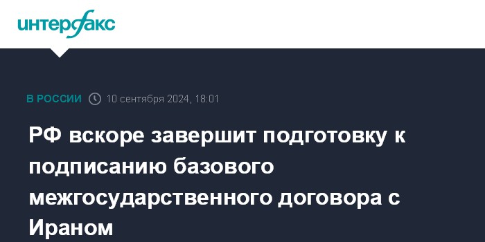 РФ вскоре завершит подготовку к подписанию базового межгосударственного договора с Ираном