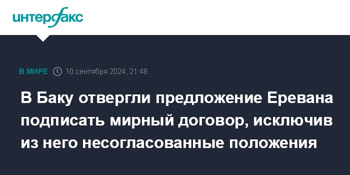В Баку отвергли предложение Еревана подписать мирный договор, исключив из него несогласованные положения