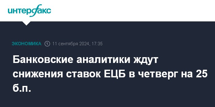 Банковские аналитики ждут снижения ставок ЕЦБ в четверг на 25 б.п.