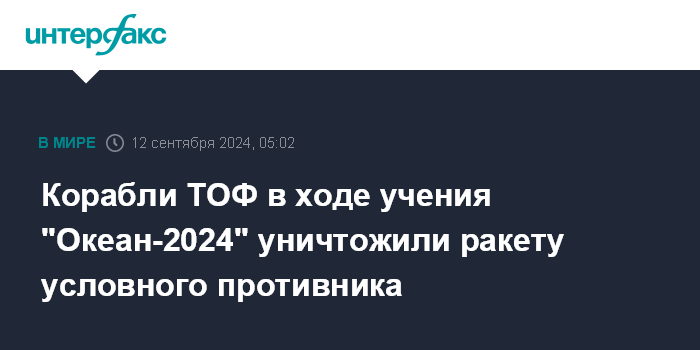 Корабли ТОФ в ходе учения "Океан-2024" уничтожили ракету условного противника