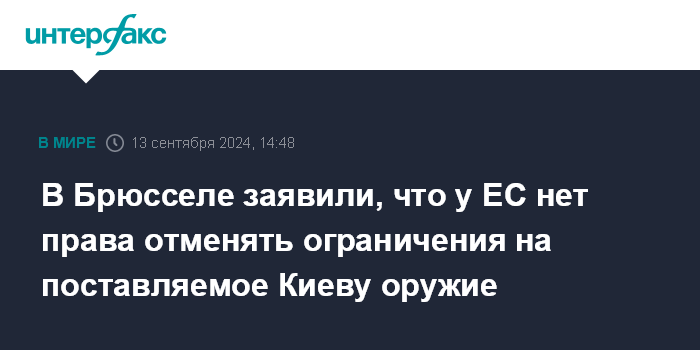 В Брюсселе заявили, что у ЕС нет права отменять ограничения на поставляемое Киеву оружие