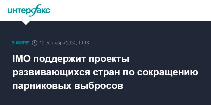 Москва. 13 сентября. INTERFAX.RU - Международная морская организация (IMO) окажет техническую поддержку проектам развивающихся стран по сокращению выбросов парниковых газов от судоходства, сообщил сайт IMO.