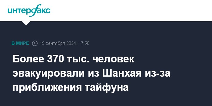Более 370 тыс. человек эвакуировали из Шанхая из-за приближения тайфуна