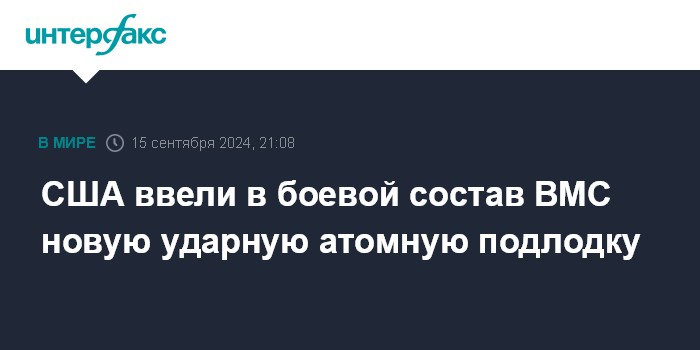 США ввели в боевой состав ВМС новую ударную атомную подлодку