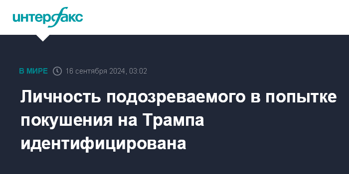Москва. 16 сентября. INTERFAX.RU - Личность подозреваемого в попытке покушения на кандидата в президенты США от Республиканской партии Дональда Трампа идентифицирована, сообщает телеканал NBC News со ссылкой на осведомленные источники.