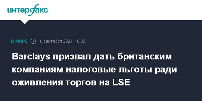 Barclays призвал дать британским компаниям налоговые льготы ради оживления торгов на LSE
