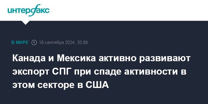 Москва. 16 сентября. INTERFAX.RU - Канада и Мексика привлекают десятки миллиардов долларов инвестиций в индустрию экспорта СПГ, чтобы дать толчок ее развитию, пишет газета Financial Times.