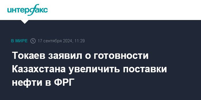 Токаев заявил о готовности Казахстана увеличить поставки нефти в ФРГ