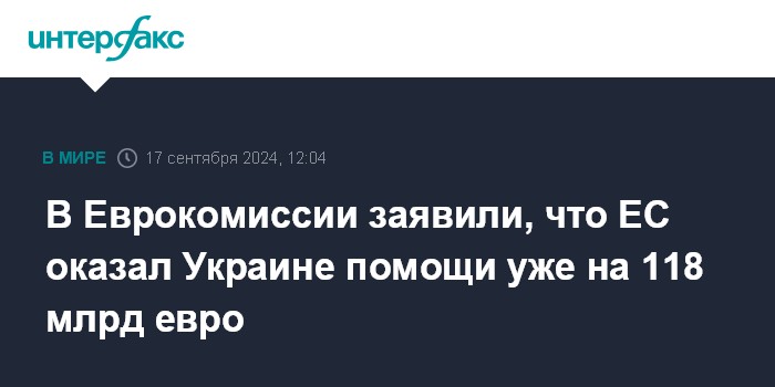 "К настоящему времени вся помощь Украине и ее народу от ЕС и ее государств-членов достигла 118 млрд евро", - говорится в заявлении Домбровскиса, опубликованном на сайте ЕК.