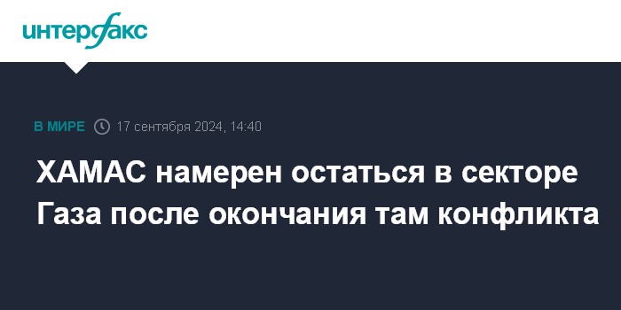 ХАМАС намерен остаться в секторе Газа после окончания там конфликта