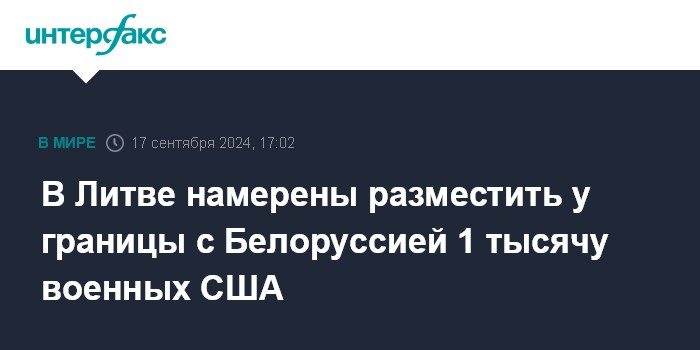 Москва. 17 сентября. INTERFAX.RU - На востоке Литвы, на полигоне в Пабраде, в 15 км от границы с Белоруссией должны разместиться около тысячи военнослужащих США, заявил через пресс-службу президент Литвы Гитанас Науседа.