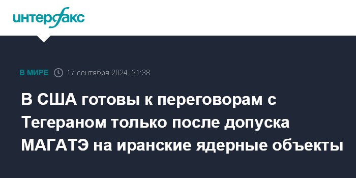 "Ирану следует прекратить блокировать доступ МАГАТЭ. И только после этого можно будет начинать такого рода обсуждение", - сказал он на брифинге, отвечая на просьбу прокомментировать заявления президента Ирана Масуда Пезешкиана о готовности обсуждать с Западом восстановление соглашения по иранскому атому.