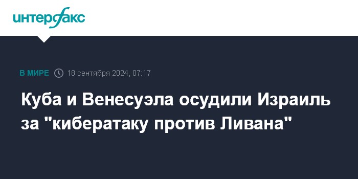 Куба и Венесуэла осудили Израиль за "кибератаку против Ливана"