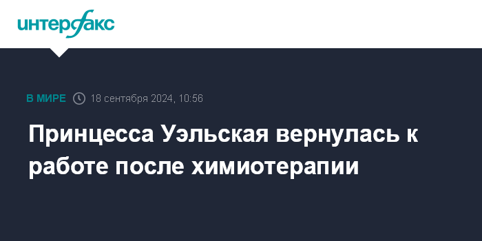 Ранее в сентябре сообщалось, что принцесса прошла курс химиотерапии и в предстоящие месяцы вернется к исполнению некоторых общественных обязанностей.