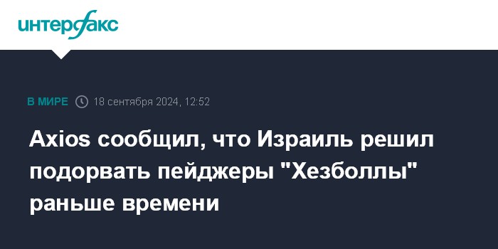 Axios сообщил, что Израиль решил подорвать пейджеры "Хезболлы" раньше времени