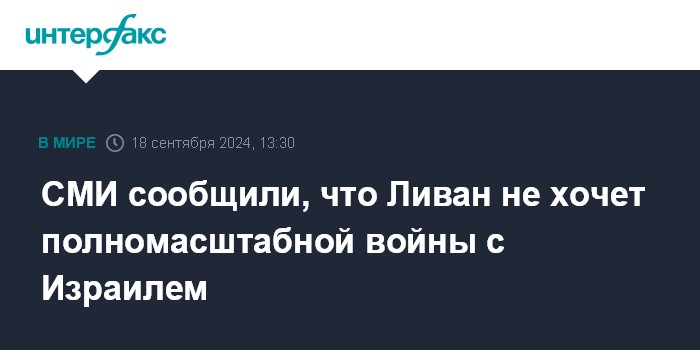 Москва. 18 сентября. INTERFAX.RU - В Ливане не хотят полномасштабной войны с Израилем, заявил в среду газете "Аль-Араби Аль-Джадид" источник в парламентской фракции "Хезболлы" после массовых взрывов пейджеров у членов этого движения.