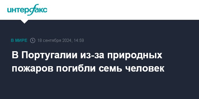 Москва. 18 сентября. INTERFAX.RU - Жертвами природных пожаров на севере Португалии стали не менее семи человек, в их числе как местные жители, так и спасатели.