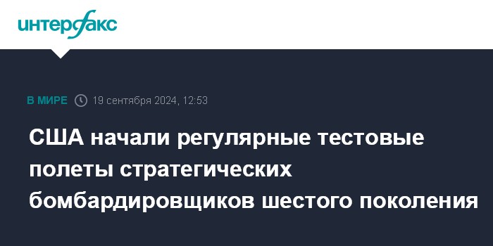 Москва. 19 сентября. INTERFAX.RU - В Соединенных Штатах начались регулярные испытательные полеты стратегических стелс-бомбардировщиков шестого поколения B-21 Raider, сообщил Томас Джонс, глава управления авиационных систем корпорации Northrop Grumman.