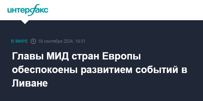 Москва. 19 сентября. INTERFAX.RU - Министры иностранных дел нескольких стран Европы выразили тревогу в связи с обострением противостояния между Израилем и ливанской группировкой "Хезболла".