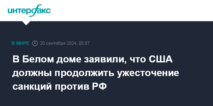 В Белом доме заявили, что США должны продолжить ужесточение санкций против РФ