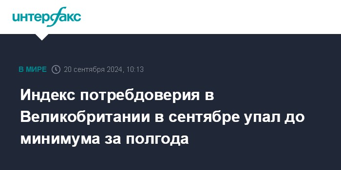 Индекс потребдоверия в Великобритании в сентябре упал до минимума за полгода