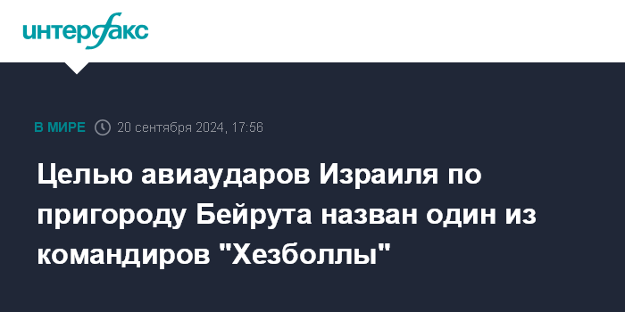 Москва. 20 сентября. INTERFAX.RU - Израильские ВВС нанесли удары по пригороду Бейрута Дахия, сообщает The Times of Israel.